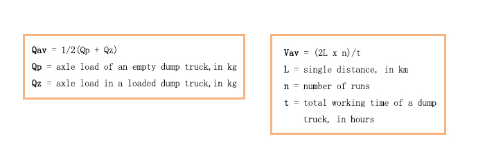 qav = میانگین بار تایر = 1 / 2 [(خالی کامیون) + (loaded کامیون)] در کیلوگرم