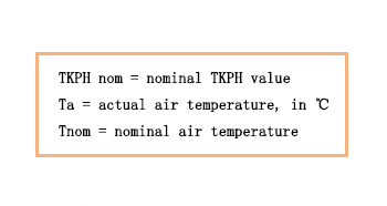با توجه به دمای محیط، ما باید اصلاح TKPH همانطور که زیر فرمول اگر لازم است.